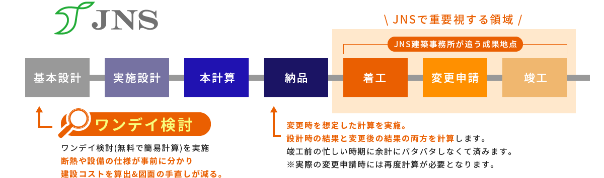 また、ワンデイ検討のご利用で工事金額・設計料の早期確定や納まりの確定ができるため計算後の手戻りが無くなりスムーズに進めることが可能です。