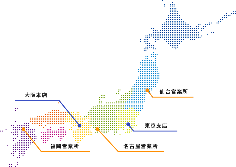 日本全国のお客様の対応ができるよう、全国に5つの営業所を設置。